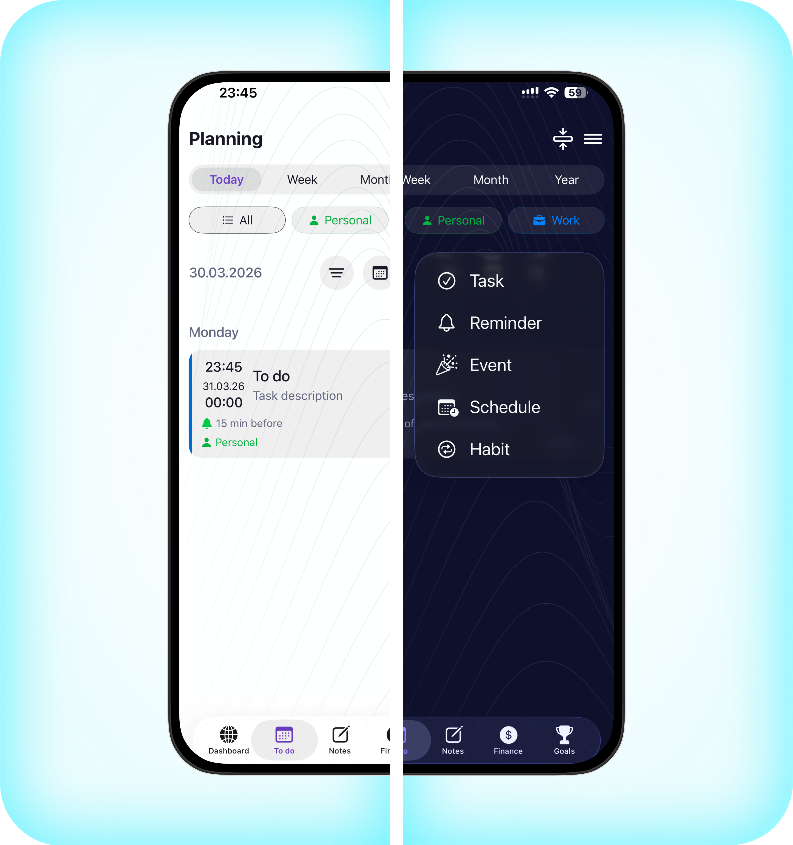 Plan your day, week, month. Track your productivity for the year. Separate personal and work tasks by categories, set reminders. Link tasks to goals and projects. Add participants from your contact list and delegate.